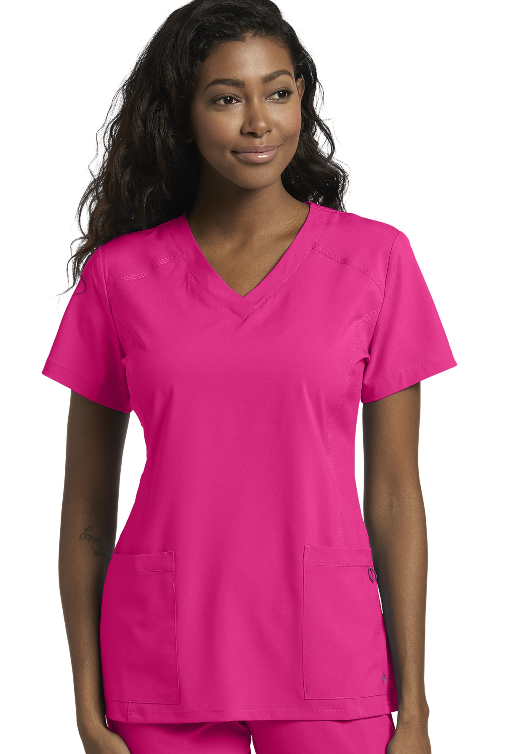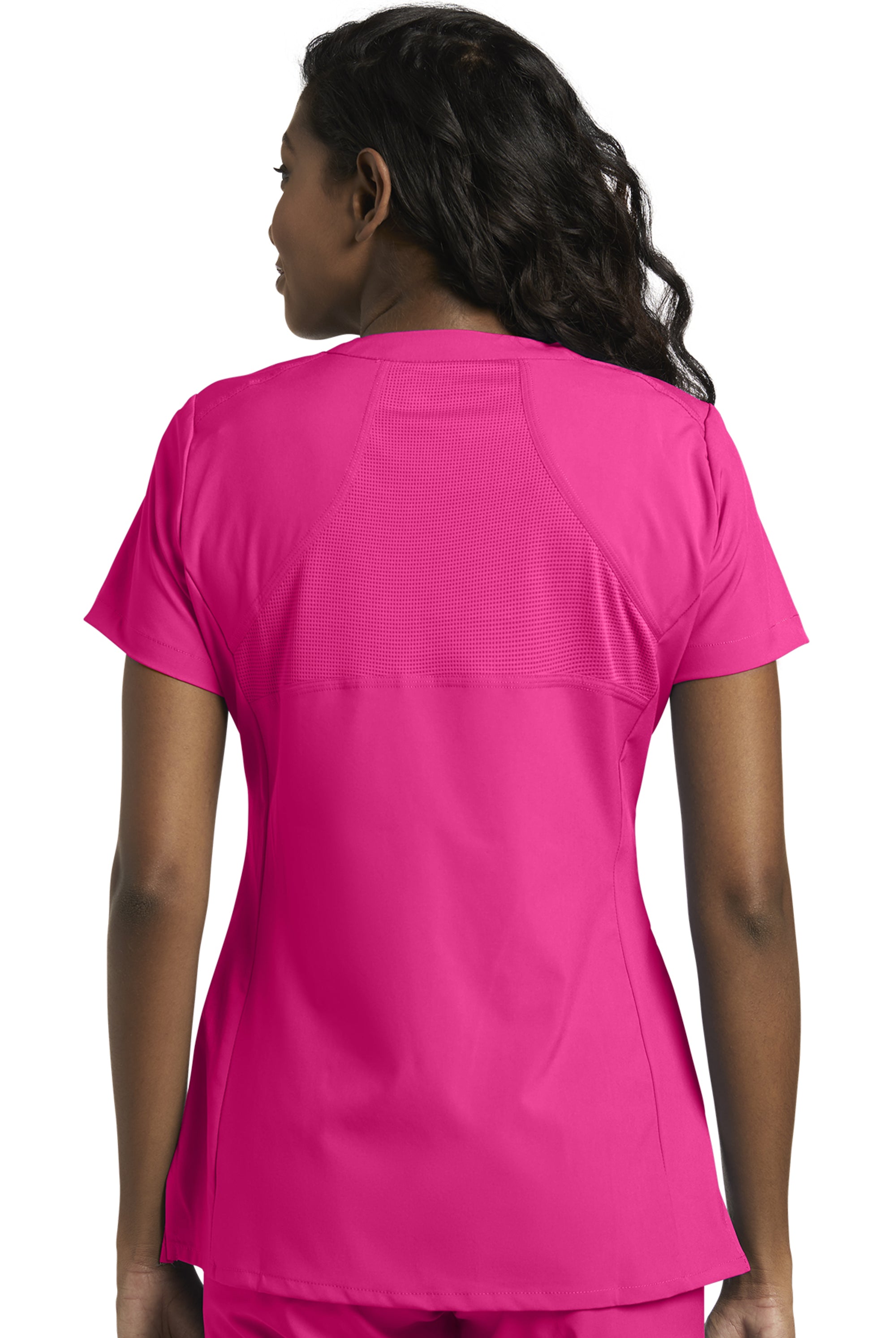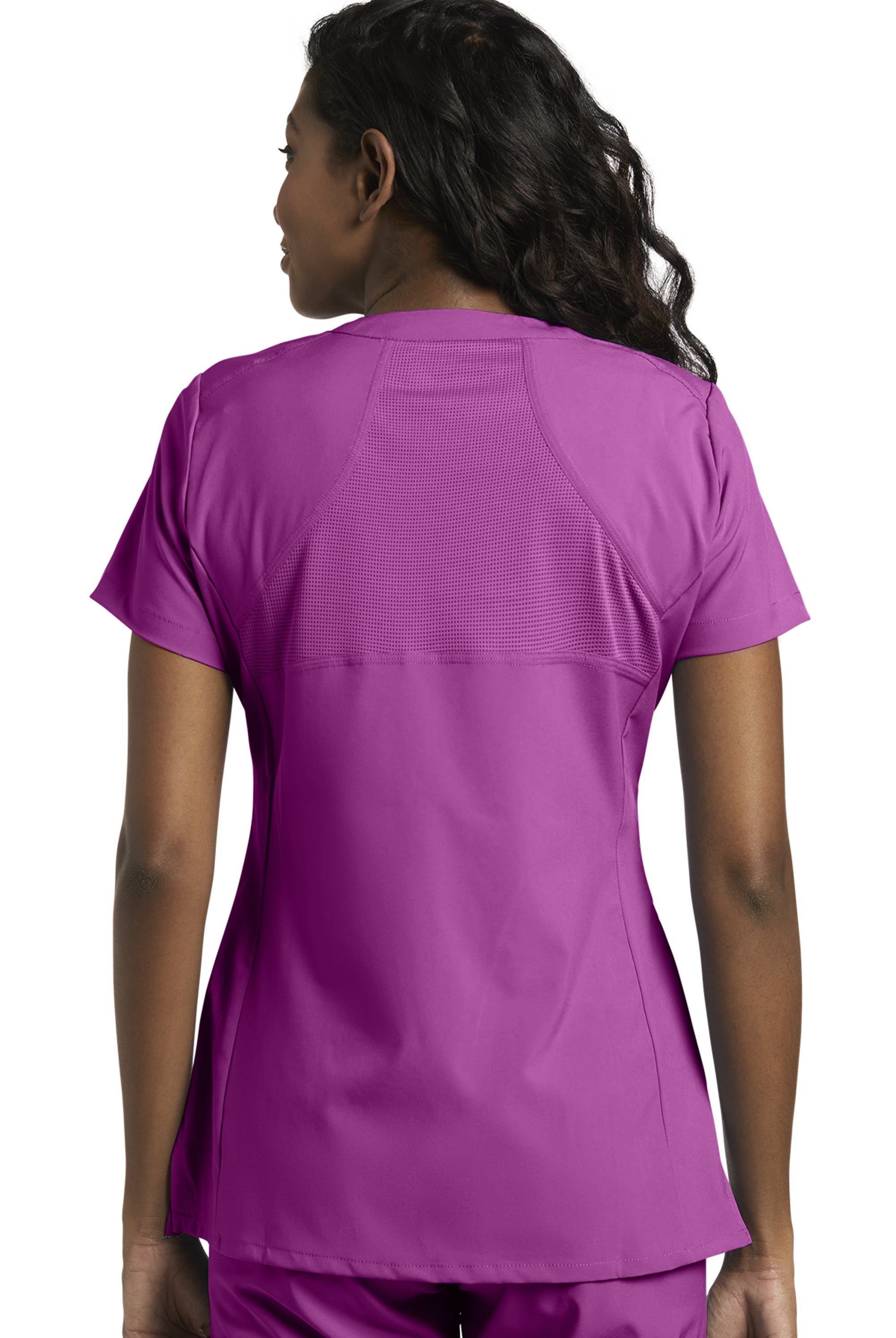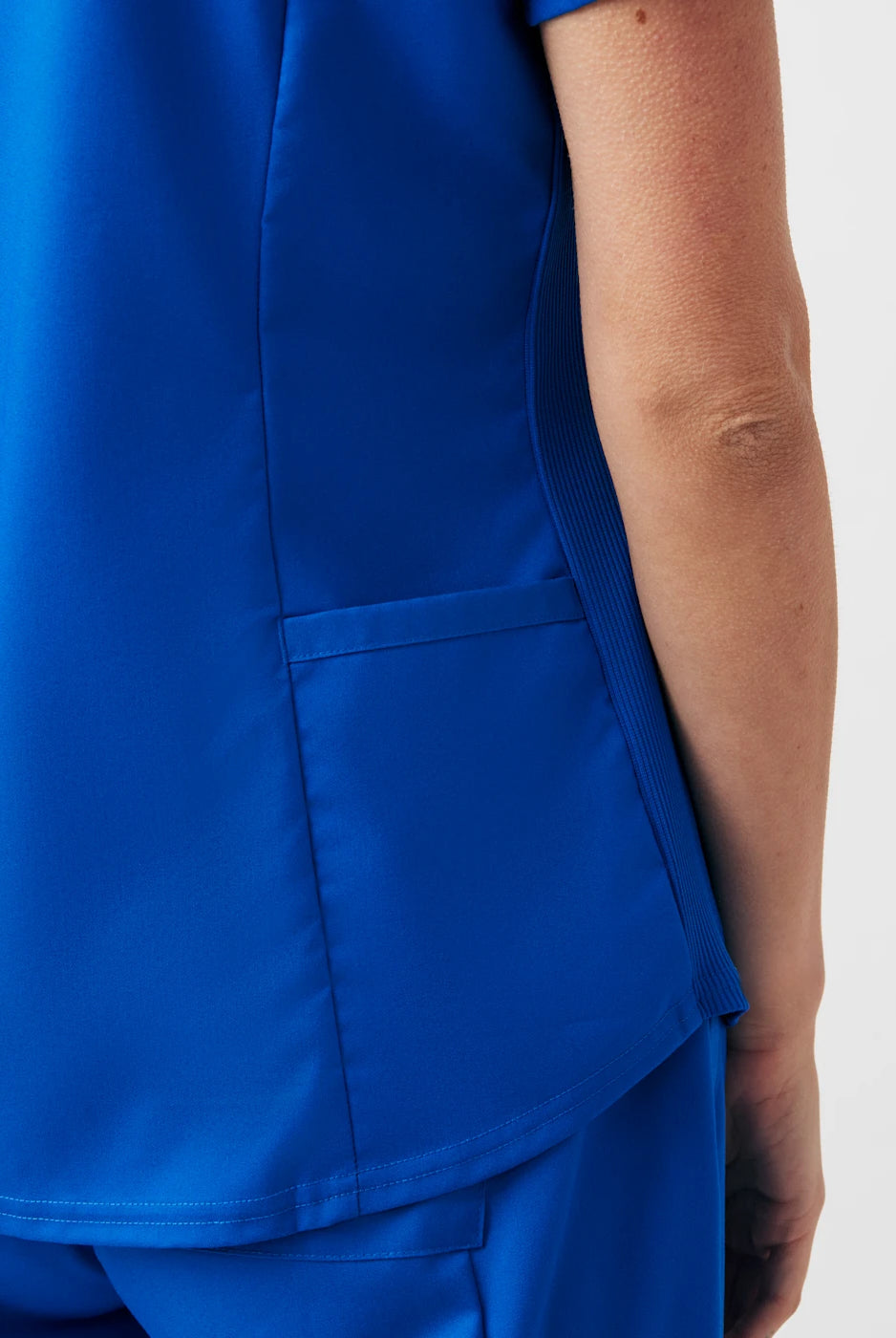 I received the scrub top I ordered right away & it’s stretch material very vibrant in colour I love it