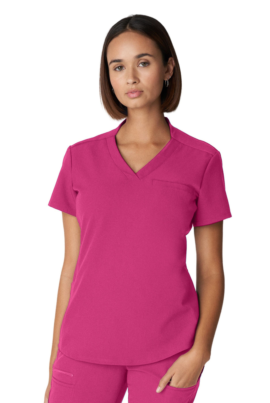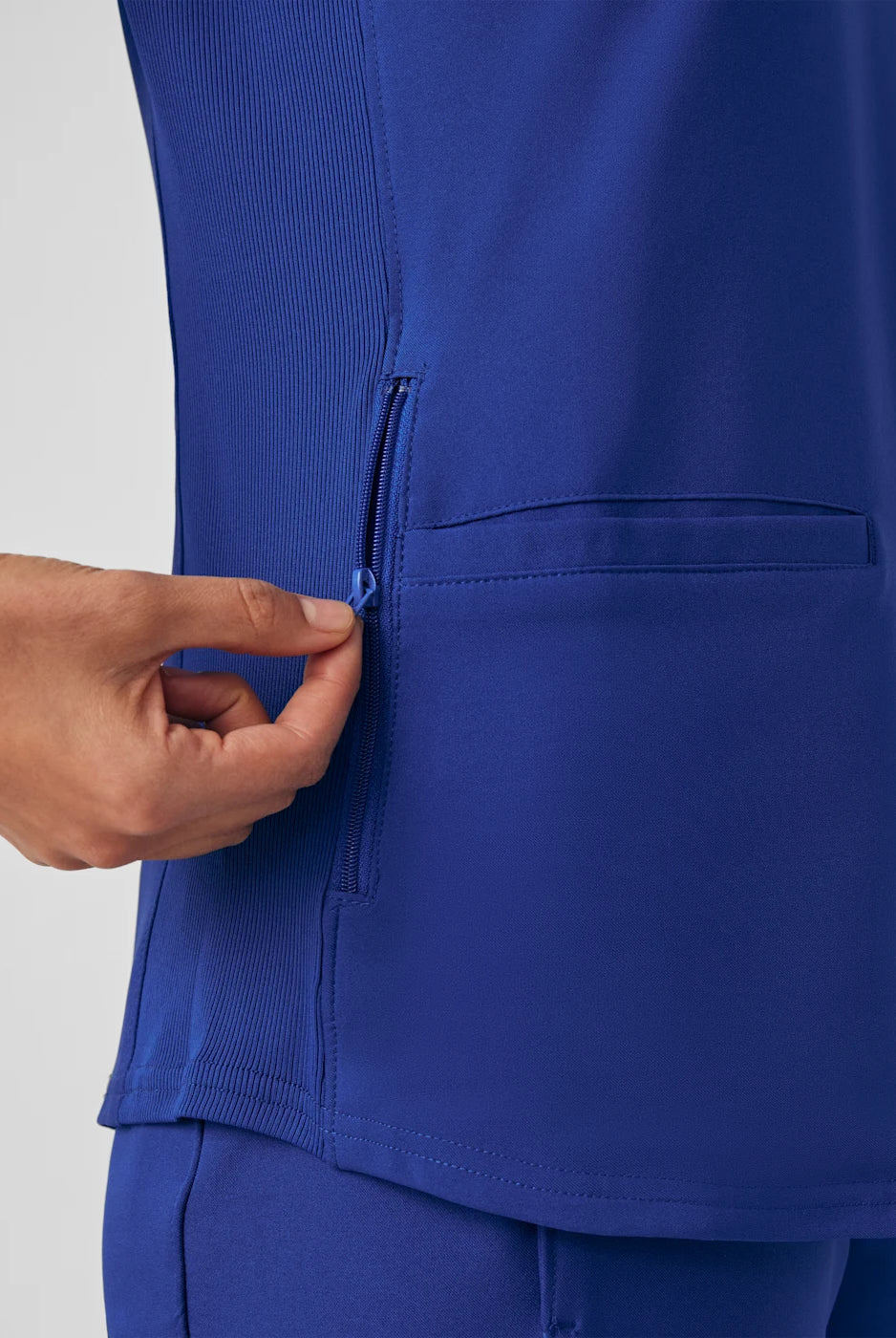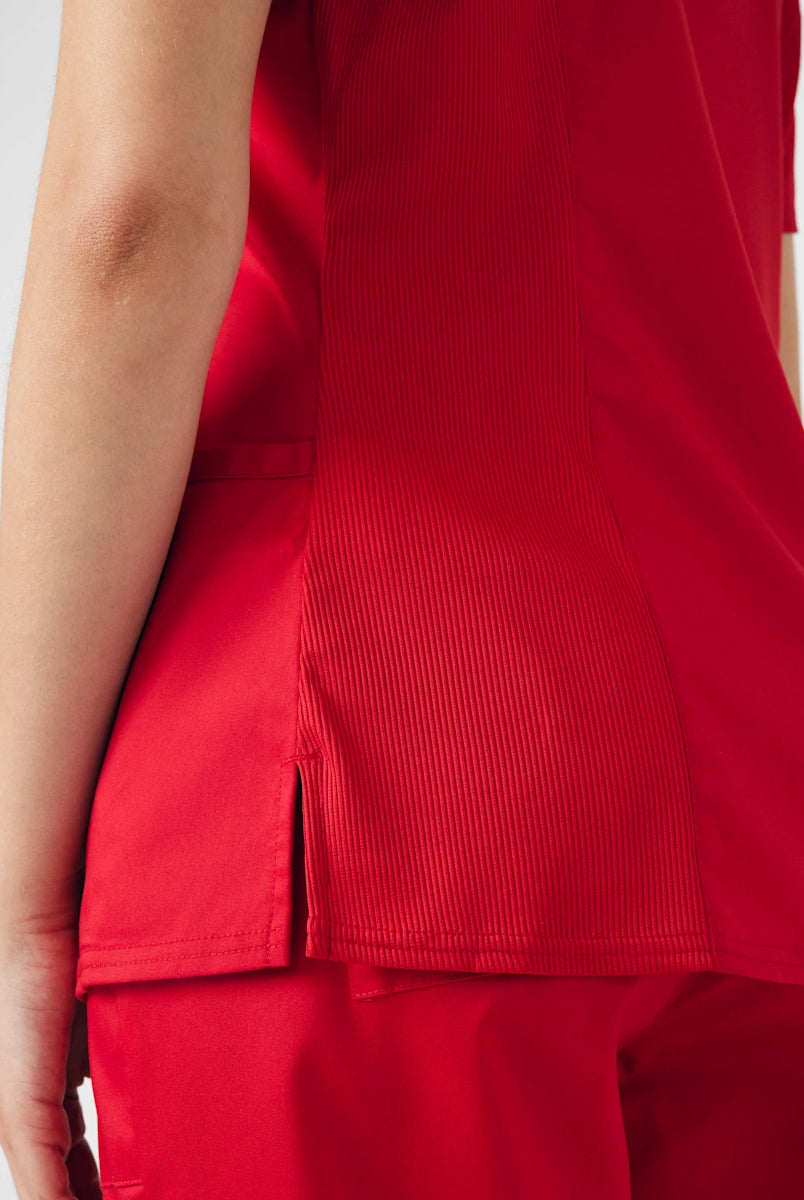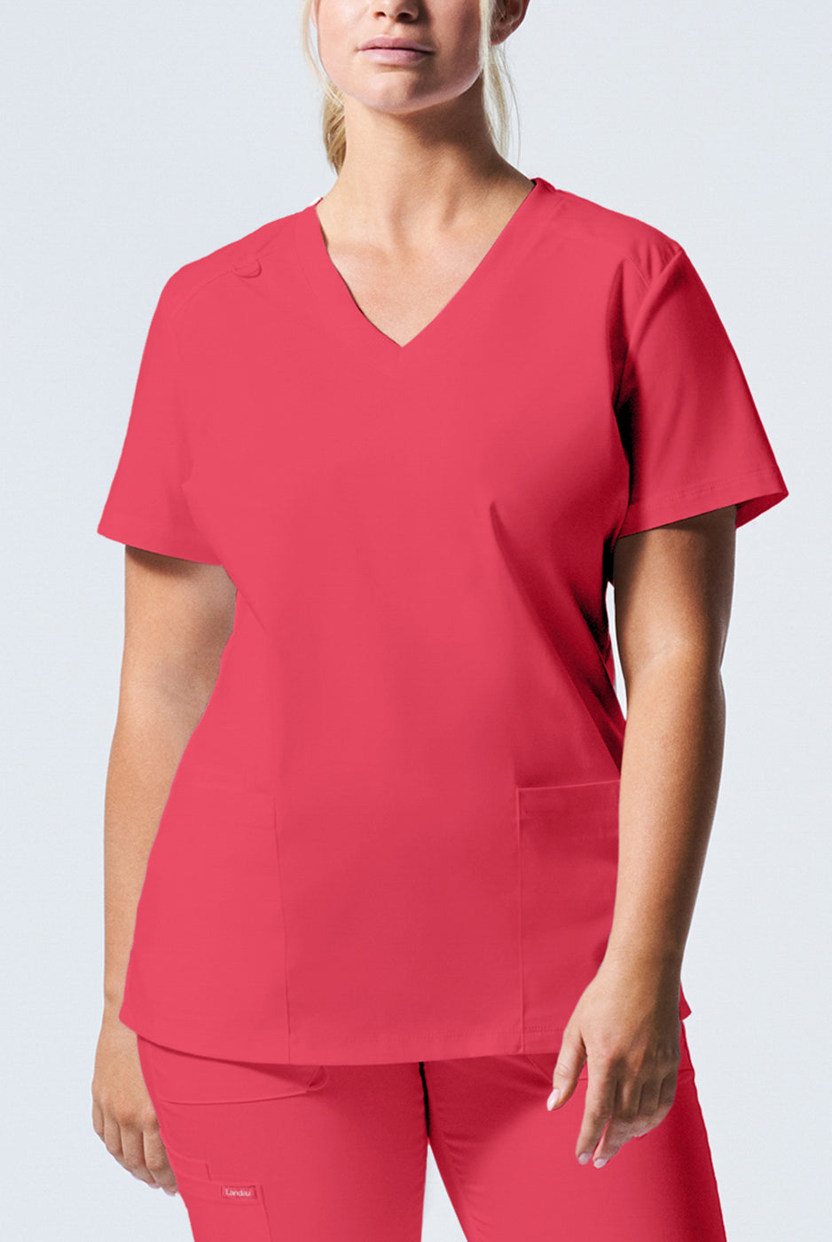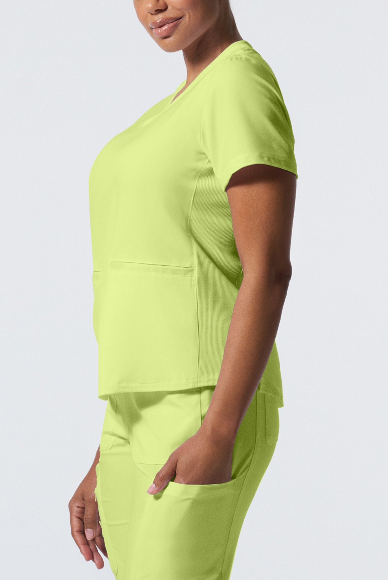 I received the scrub top I ordered right away & it’s stretch material very vibrant in colour I love it