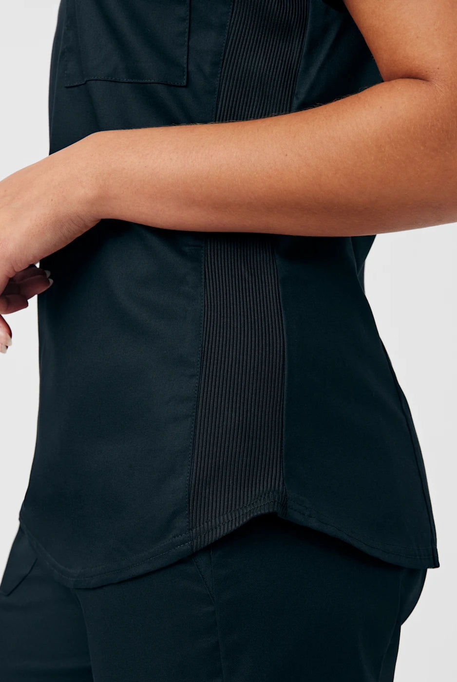 I received the scrub top I ordered right away & it’s stretch material very vibrant in colour I love it