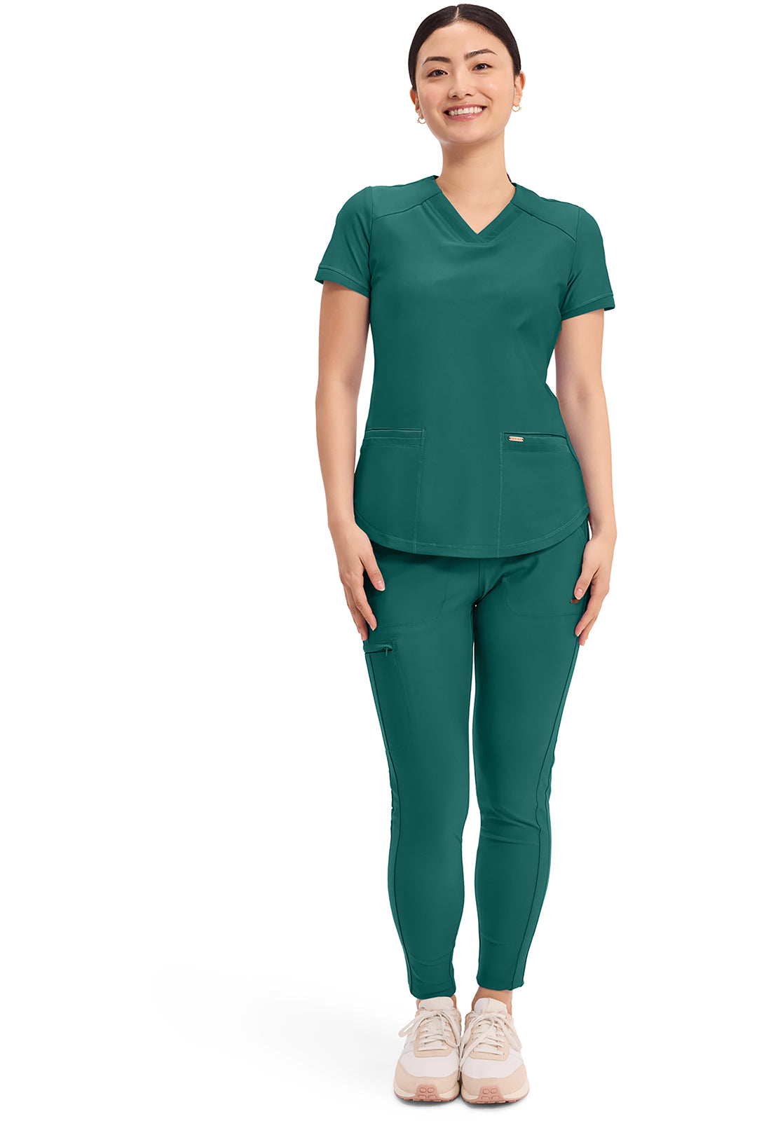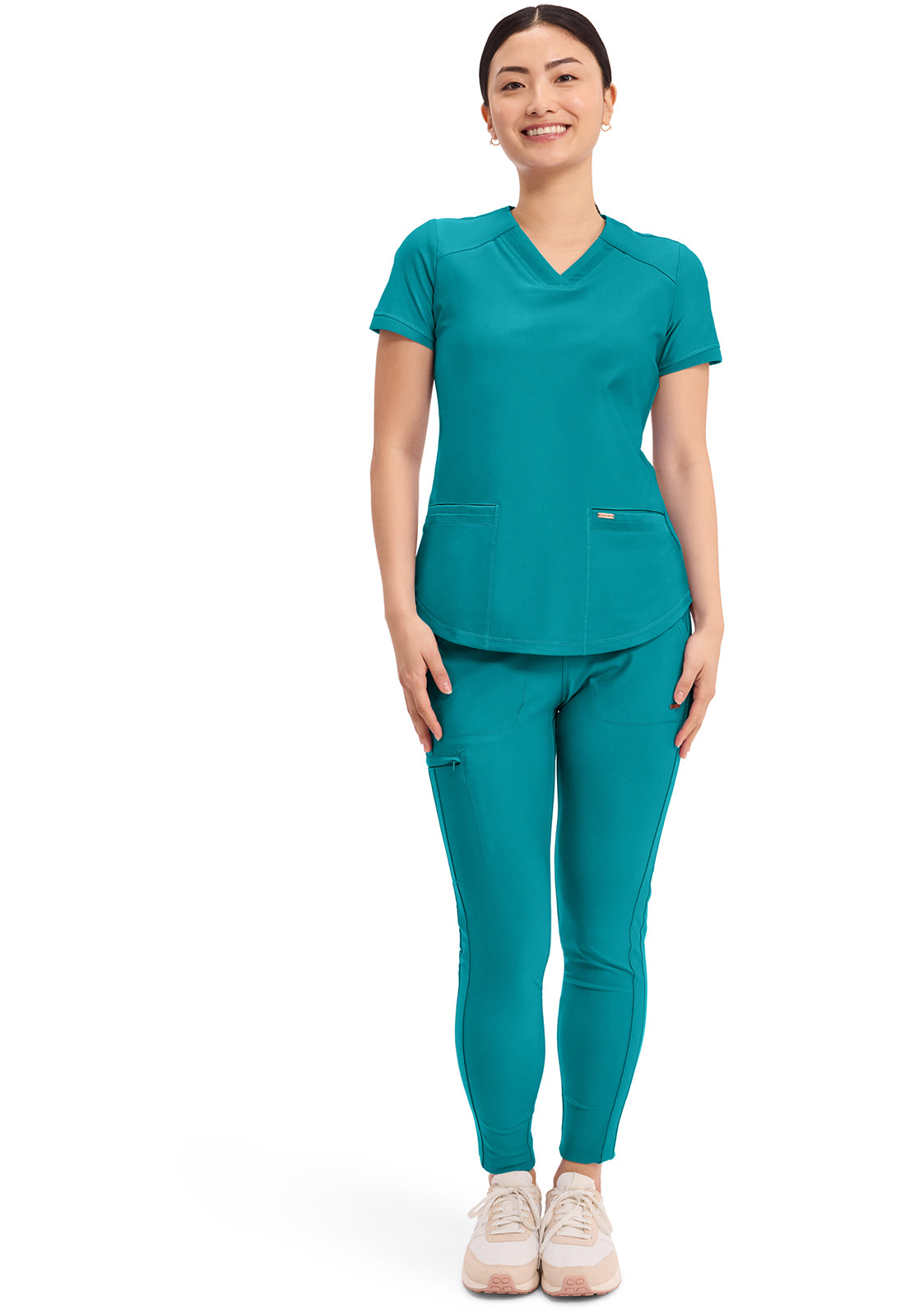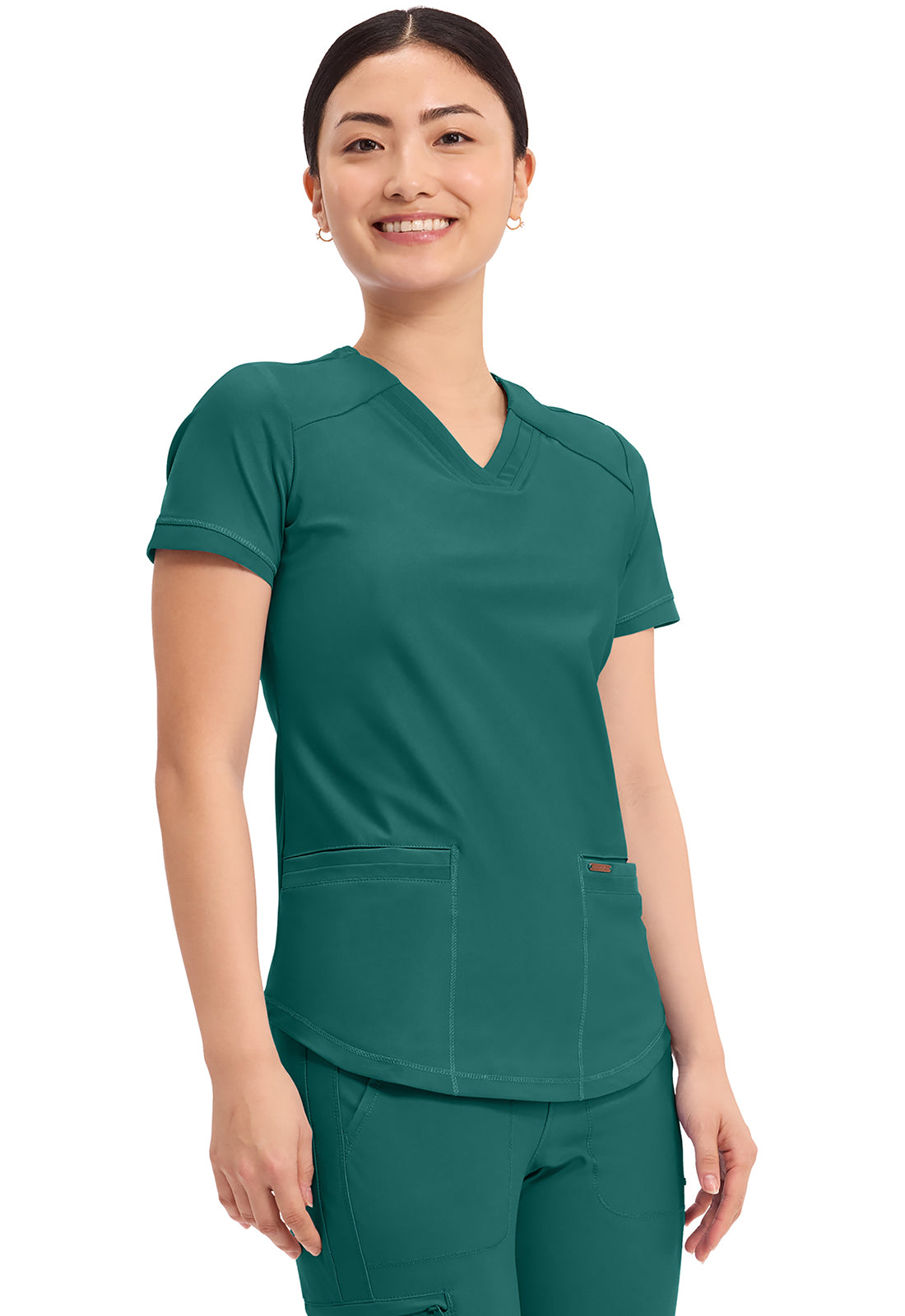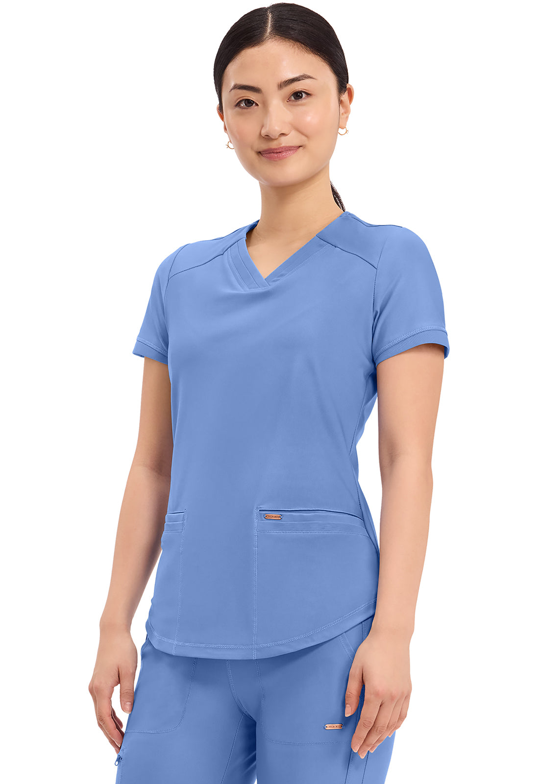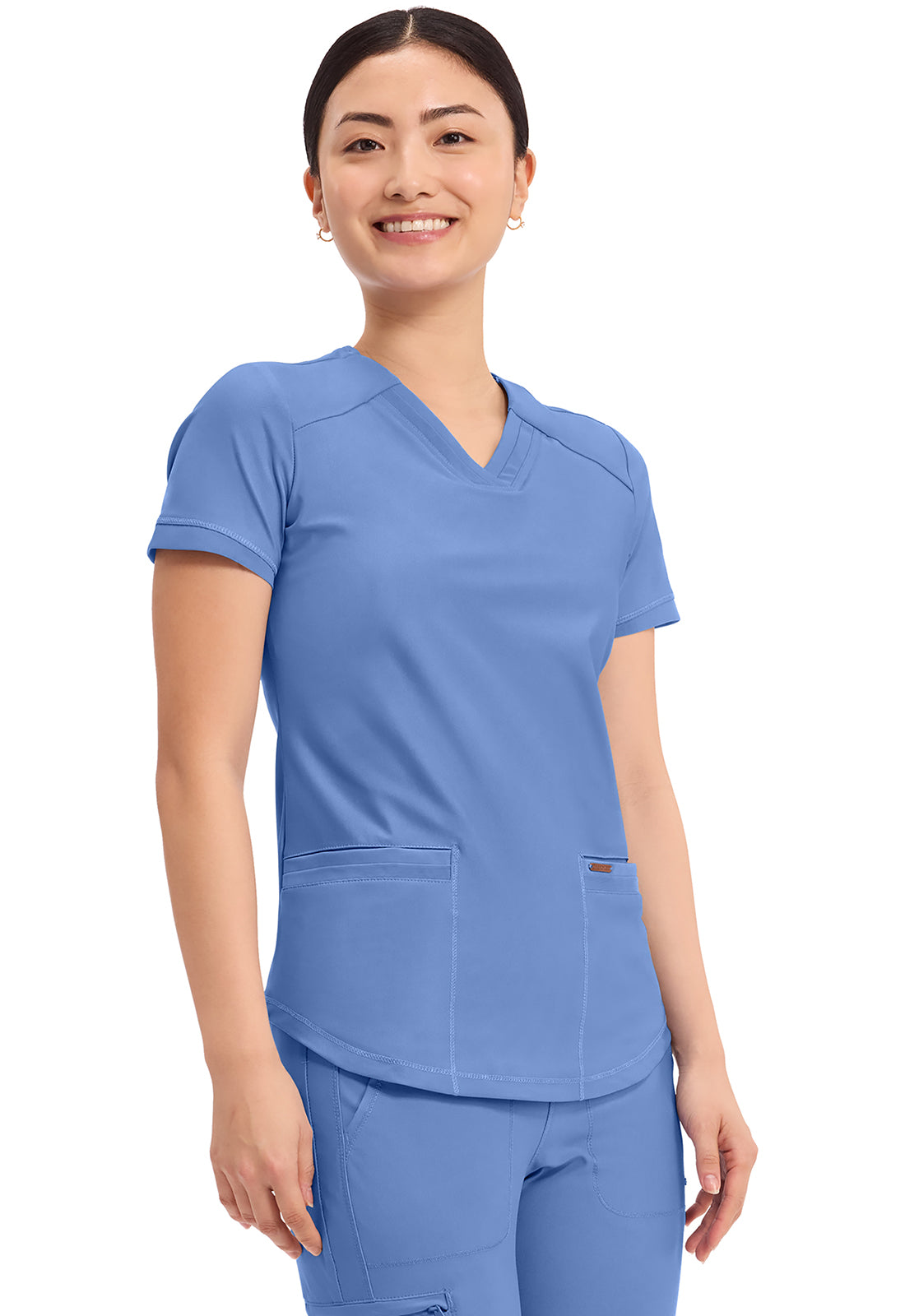 Cherokee Women's V-Neck Solid Scrub Top features beautiful athletic styling and subtle mesh panel inserts to help maximize your workday. Find your ideal look with this versatile, elegant solid scrub top.