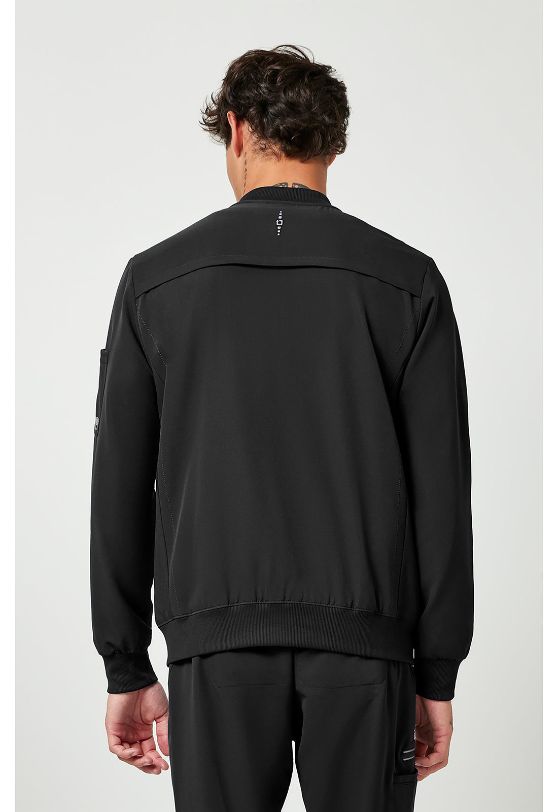 Zip up bomber Jacket offers 2 zipper pockets, 1 sleeve pocket, 2 inside pocket and 1 media pocket. Ribbed knit on baseball collar, cuffs and band at hem adds charms to this jacket.