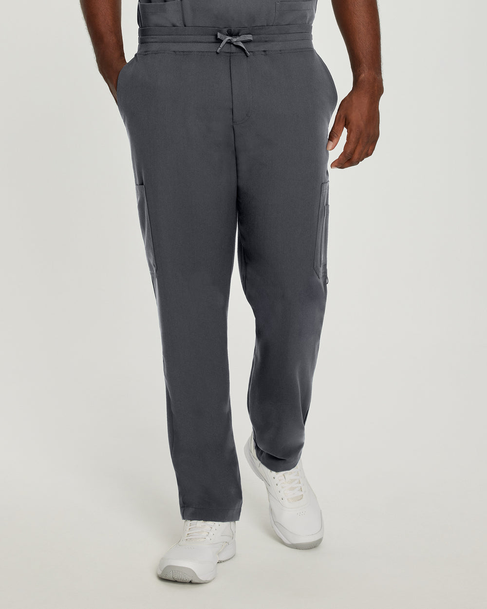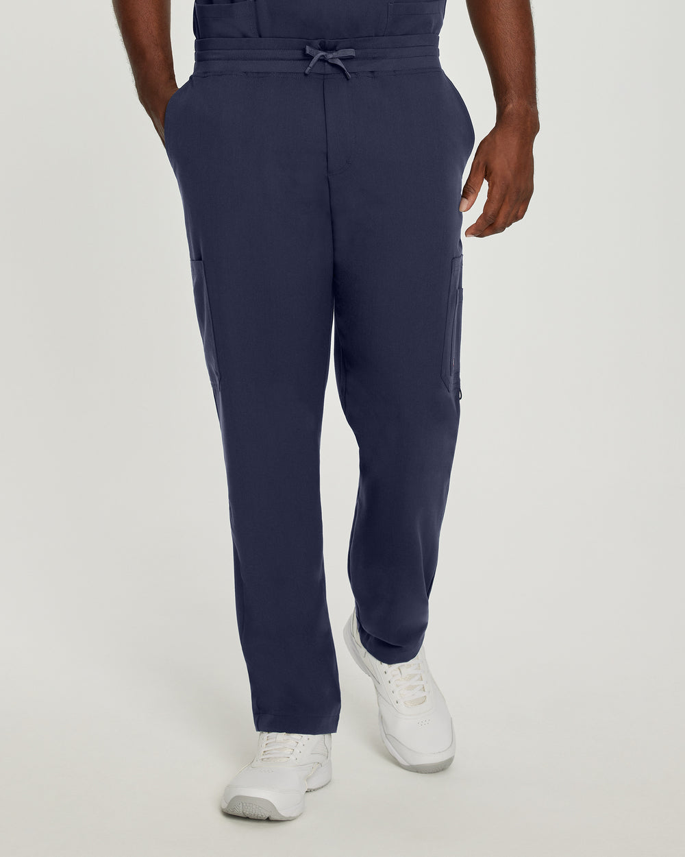Our fashionable V-Tess men's straight-leg cargo scrub pants come with a mid-rise triple-elastic waist with a mock fly front. With 7 pockets and a contemporary slim fit that's contoured to conform to your body and complement your shape, these fade resistant and breathable cargo pants support healthcare professionals’ energy all day.