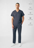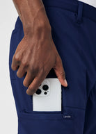 This Men's zip fly cargo pant, features a straight leg with an internal elastic and drawstring to provide extra security and functionality. It also comes with 2 stacked cargo pockets one with a hidden elastic to keep items organized, 2 front Pockets and 2 Back pockets, making this pant essential for caregivers.
