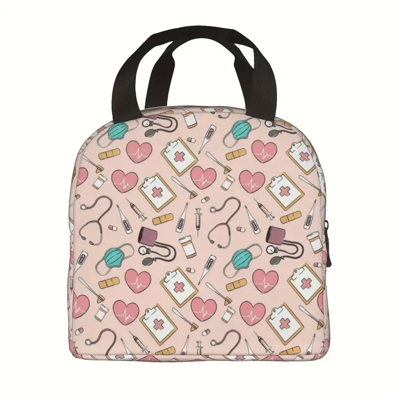 Medical-Themed Polyester Lunch Bag, Unisex, Hand Washable, Cartoon Medical Print Design, Rectangular, Ideal for Work, Travel, Picnic - Non-Food Contact, Insulated Cooler Bag,Back to School