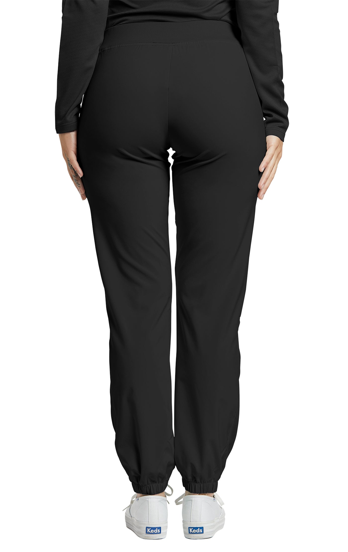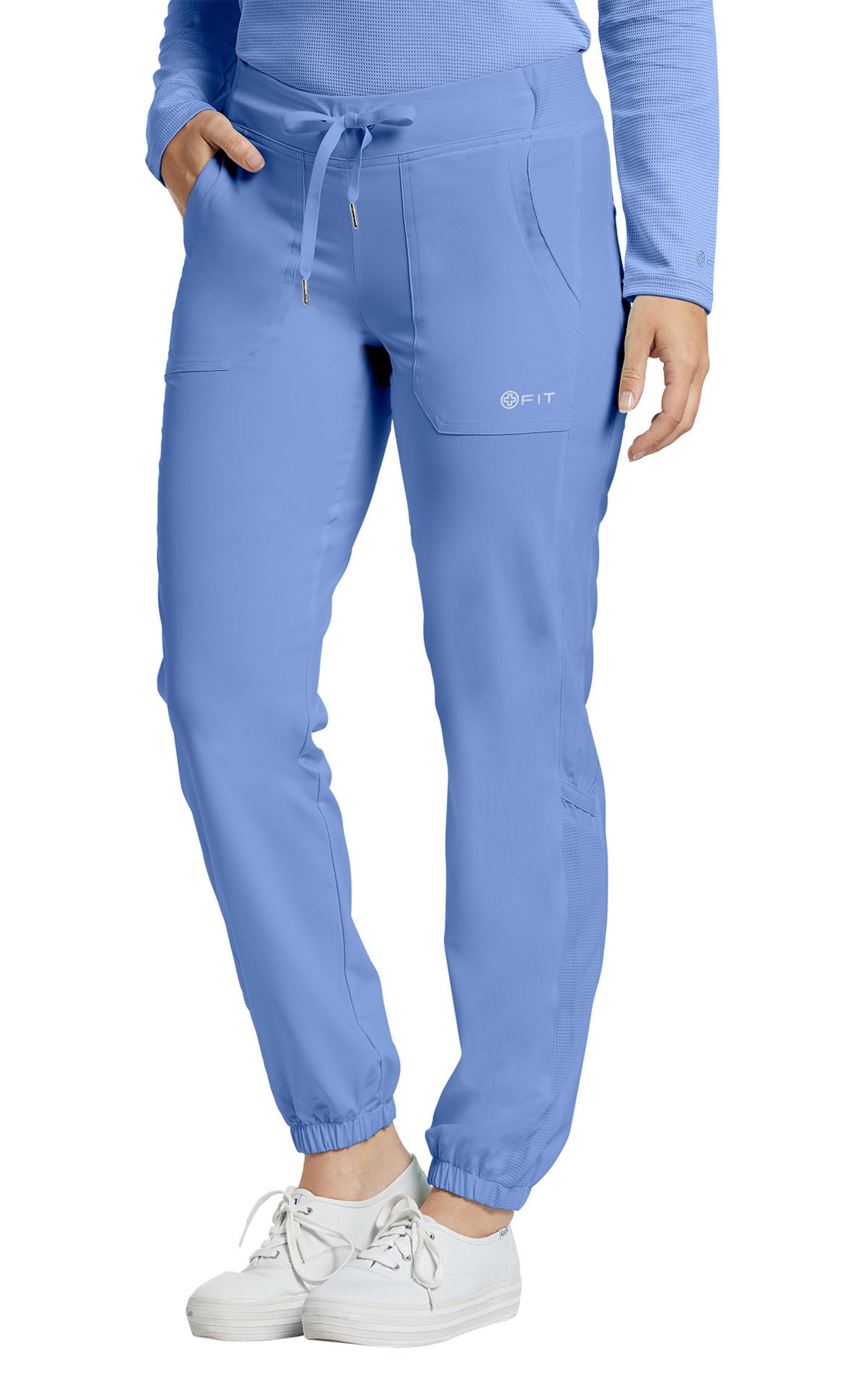 The White Cross FIT women's banded-bottom jogger scrub pants have a 4-way super stretch for maximum comfort and flexibility. This quick-dry fabric pulls moisture to the surface so your skin feels dry through your most active shifts. These moisture-wicking joggers come with 2 pockets and a mid-rise elastic-back waist with a flat front for a clean look with a secure fit. Plus, our FIT women's banded-bottom jogger scrub pants have elastic leg cuffs and mesh detailing on the back waistband and outer calves.