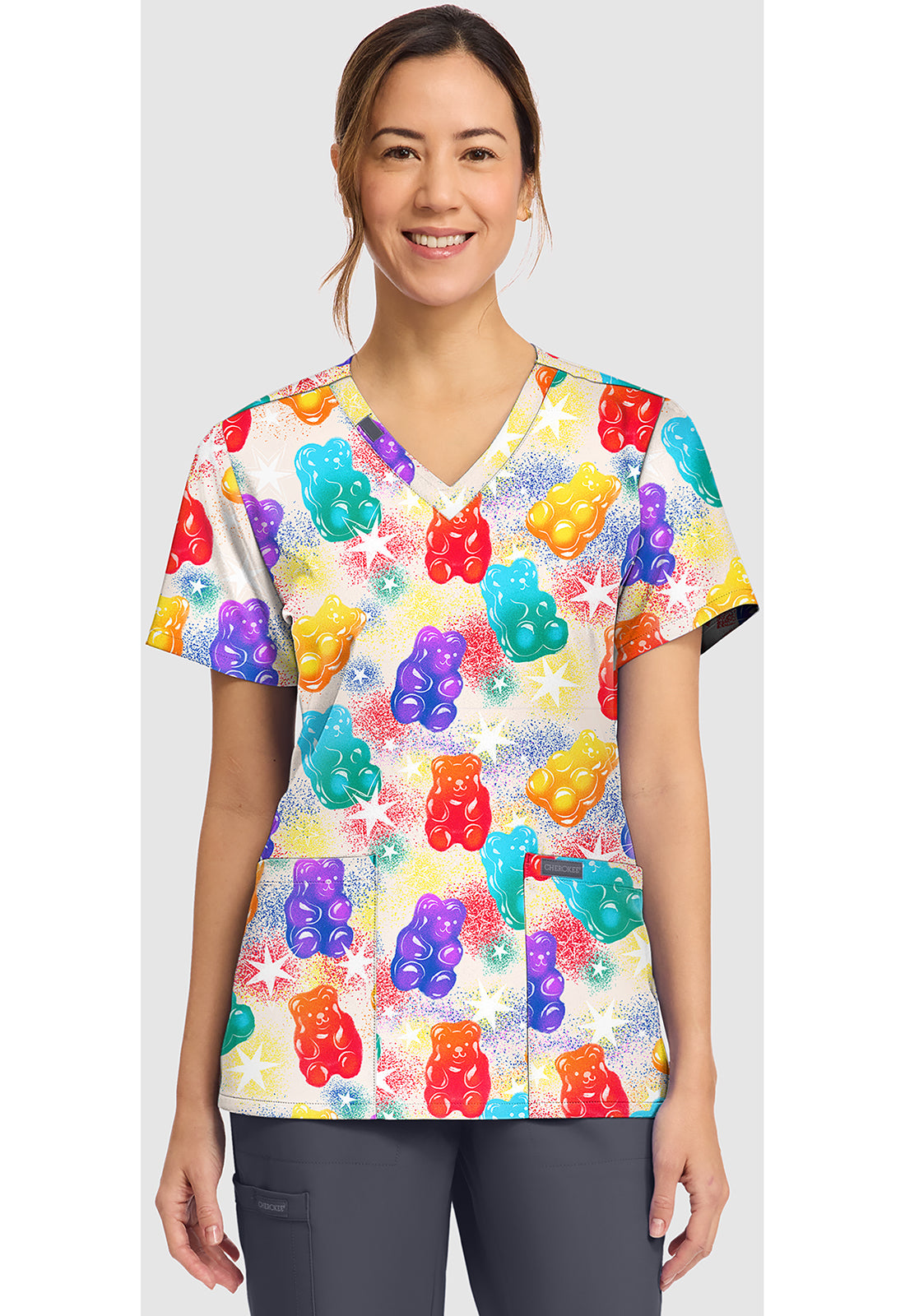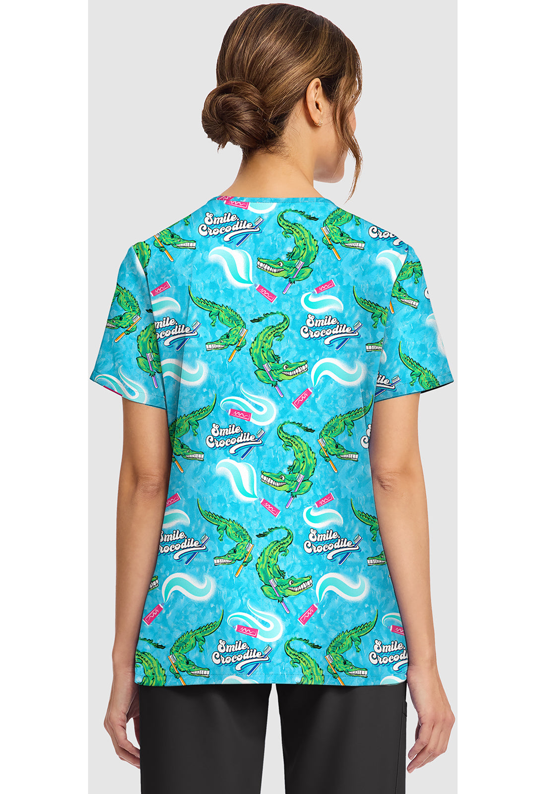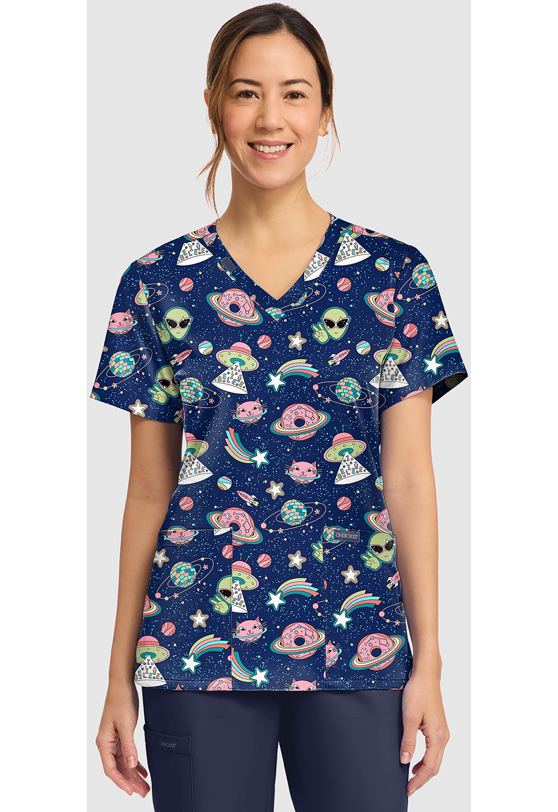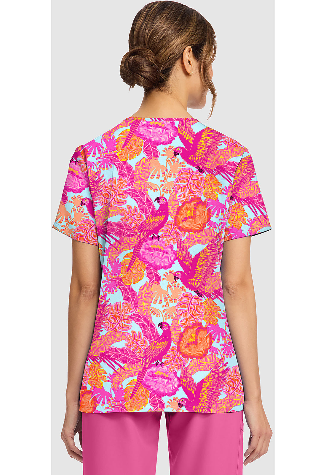 Zinnia Printed Scrub Top, Printed Floral Scrub Top, Tie Dye Printed Scrub Top