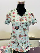 Sage Green Colourful Snails & Butterflies Printed Women's Scrub Top