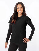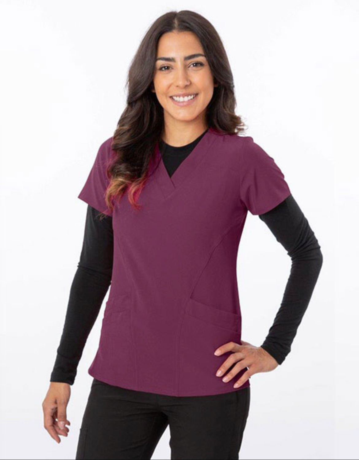 This scrub top is perfect if you are looking for a shorter scrub top! The stitching and form in this scrub top is flattering, feminine yet professional for work!