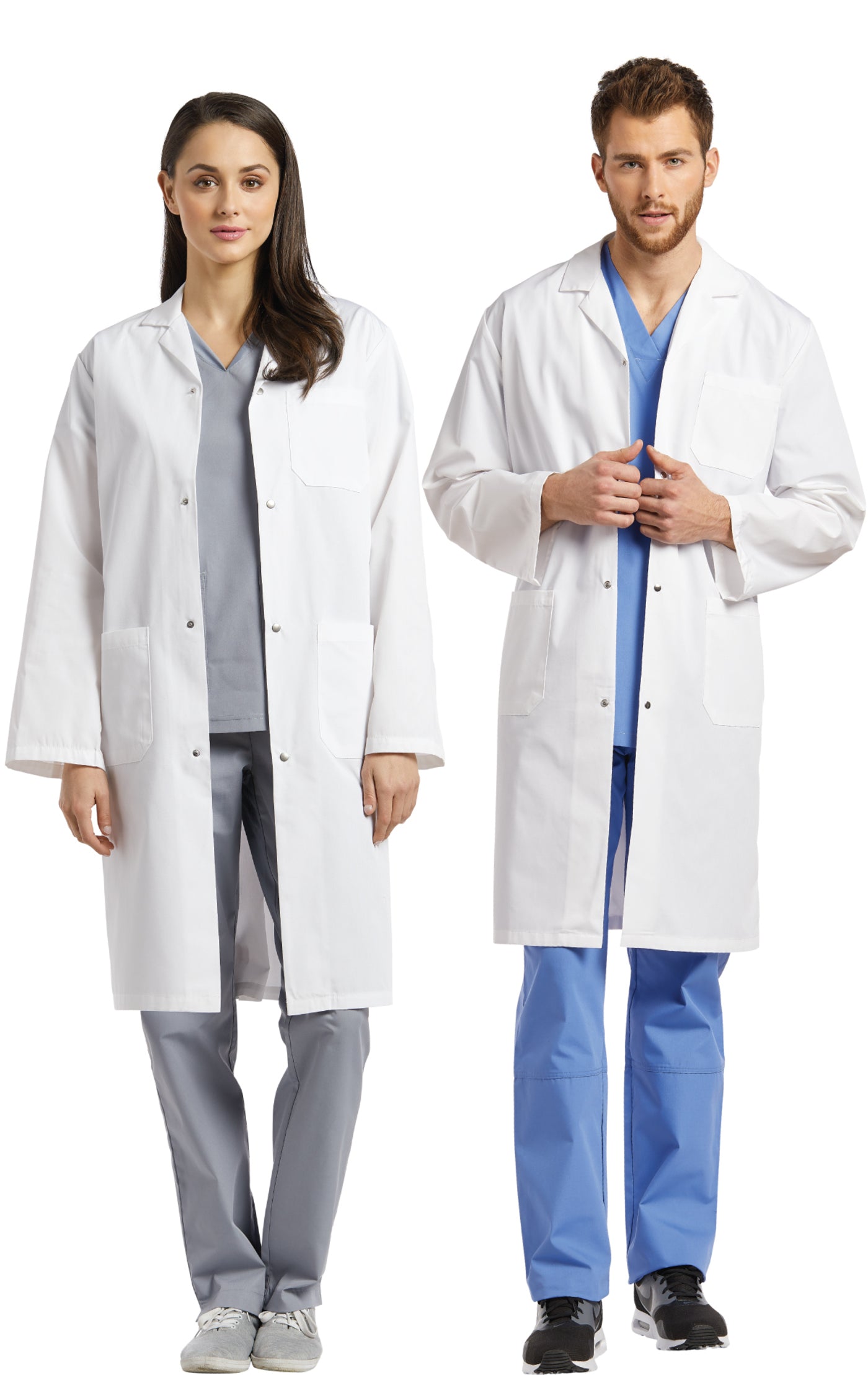 Unisex White Cross Lab Coat with Snap Closure Buttons