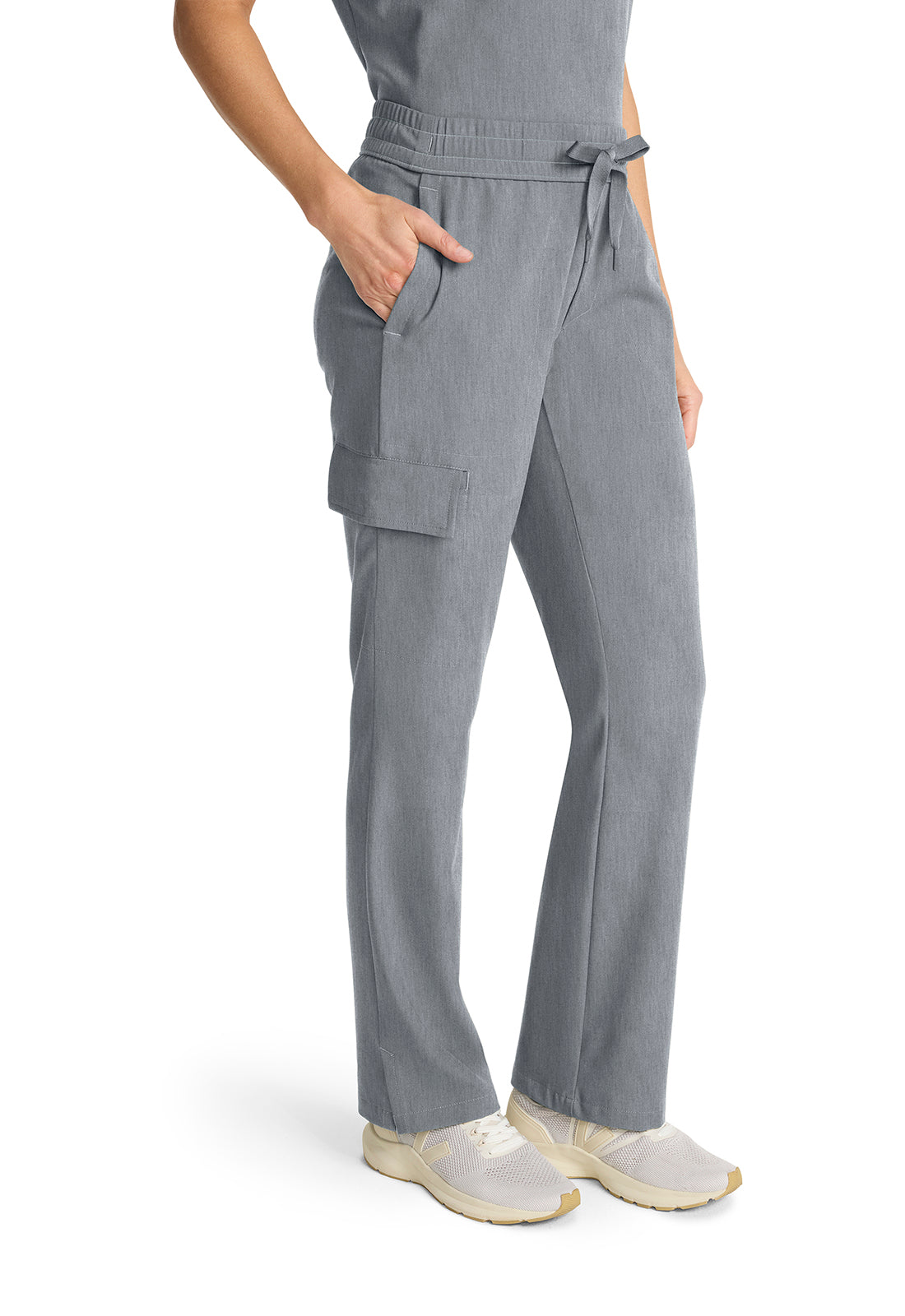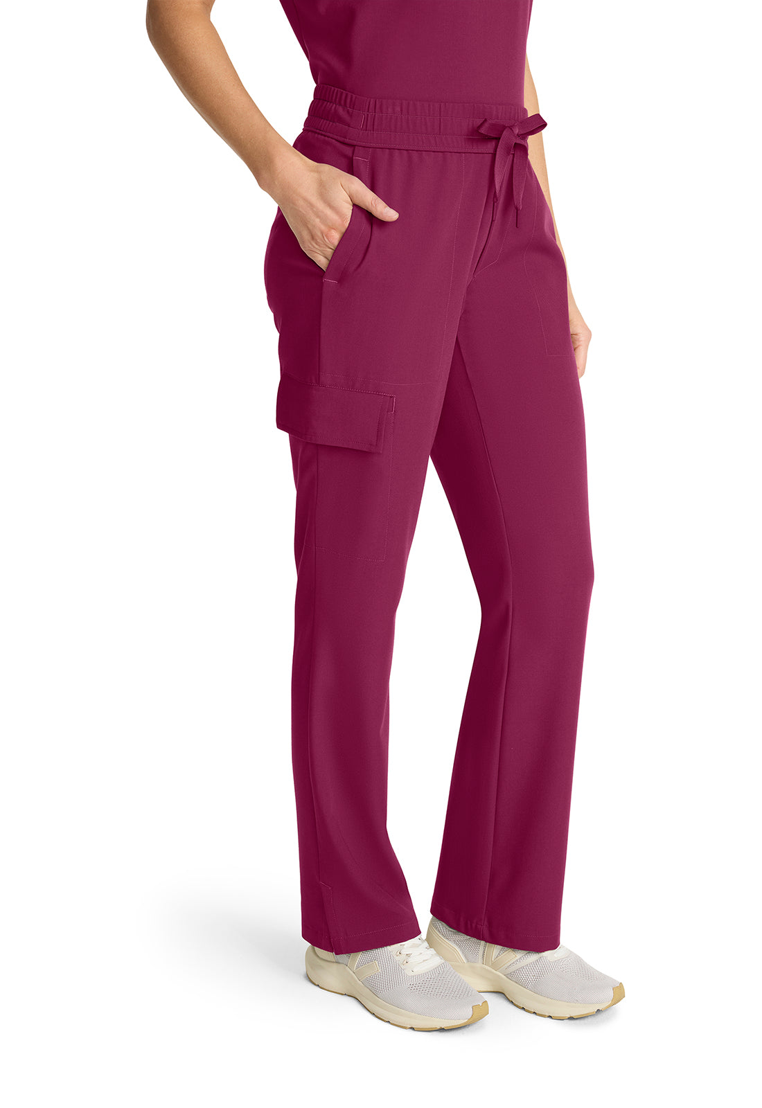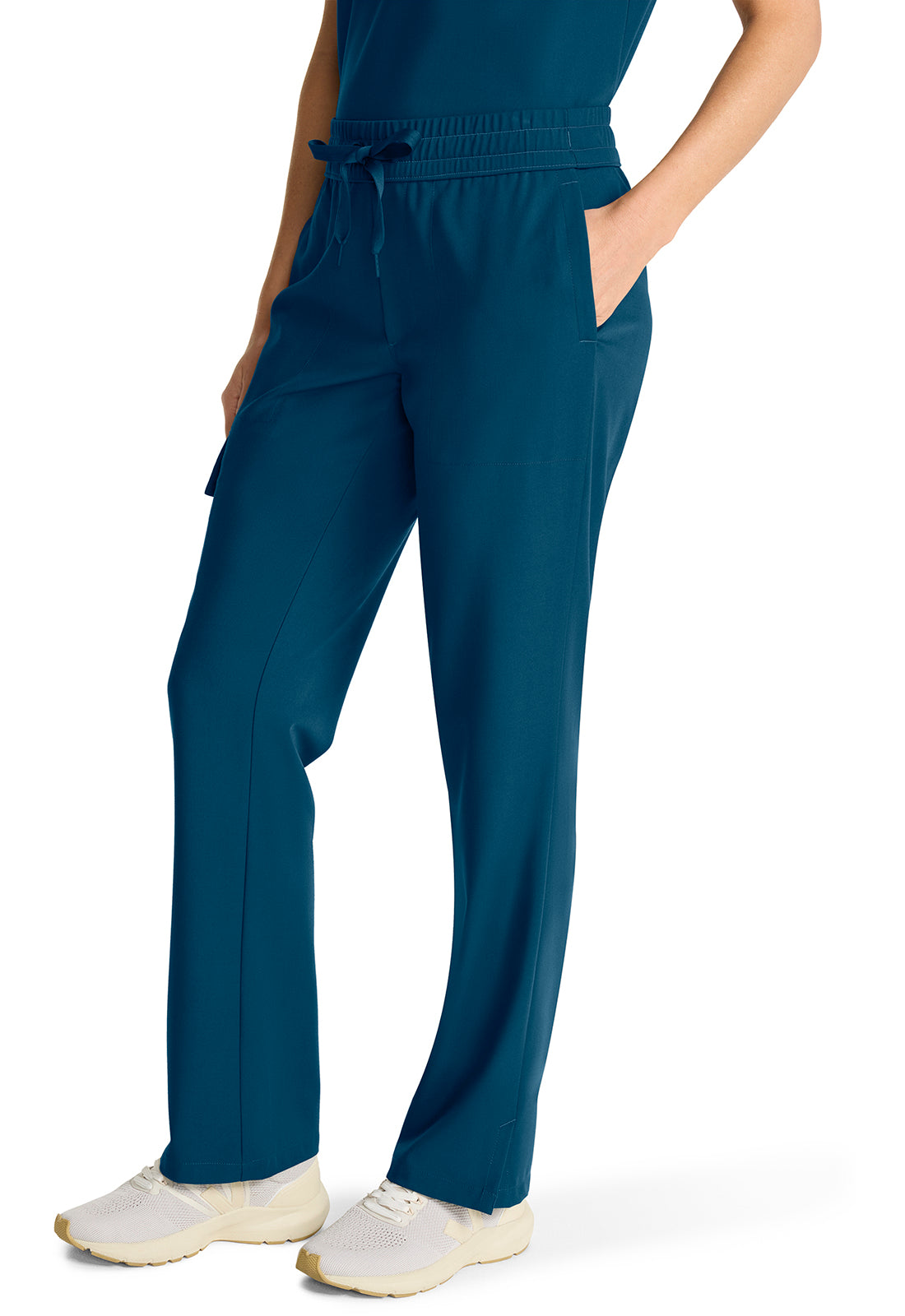 Style and comfort combine for one very wearable pant. The Brandy mid rise pant features an elasticized waistband, webbed drawstring, and mock fly. There are four pockets for organized storage: two front pockets, one flap cargo pocket on the wearer's right side, and one back welt pocket. Flap cargo pocket converts to a welt pocket for easy access. Pockets include pretty printed pocket bag. Curved back yoke for a better fit across the hips. Side vents at hem. The soft four-way stretch fabric includes moisture wicking for added comfort. Modern fit. Straight leg, 17" opening. Inseam: 31"