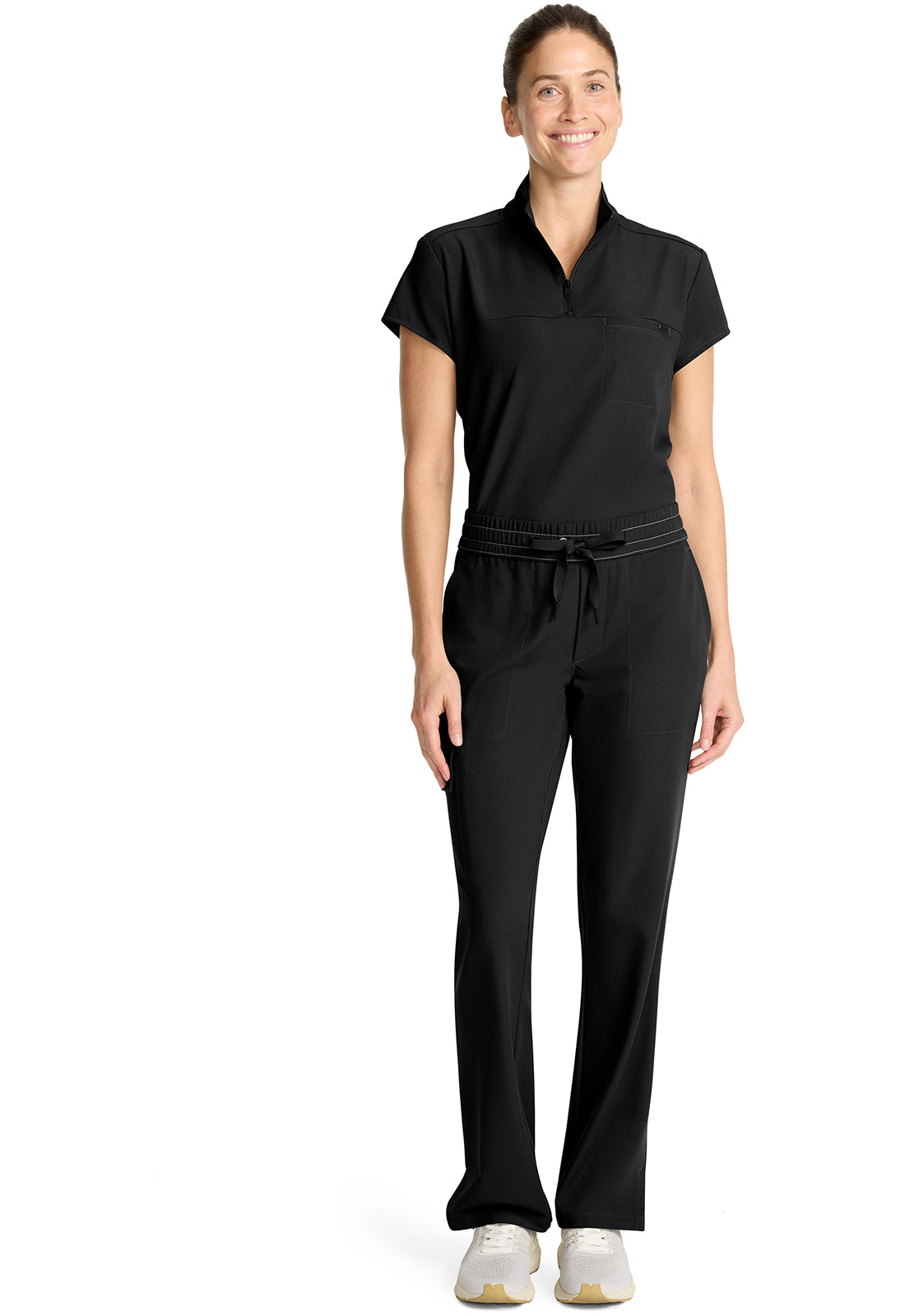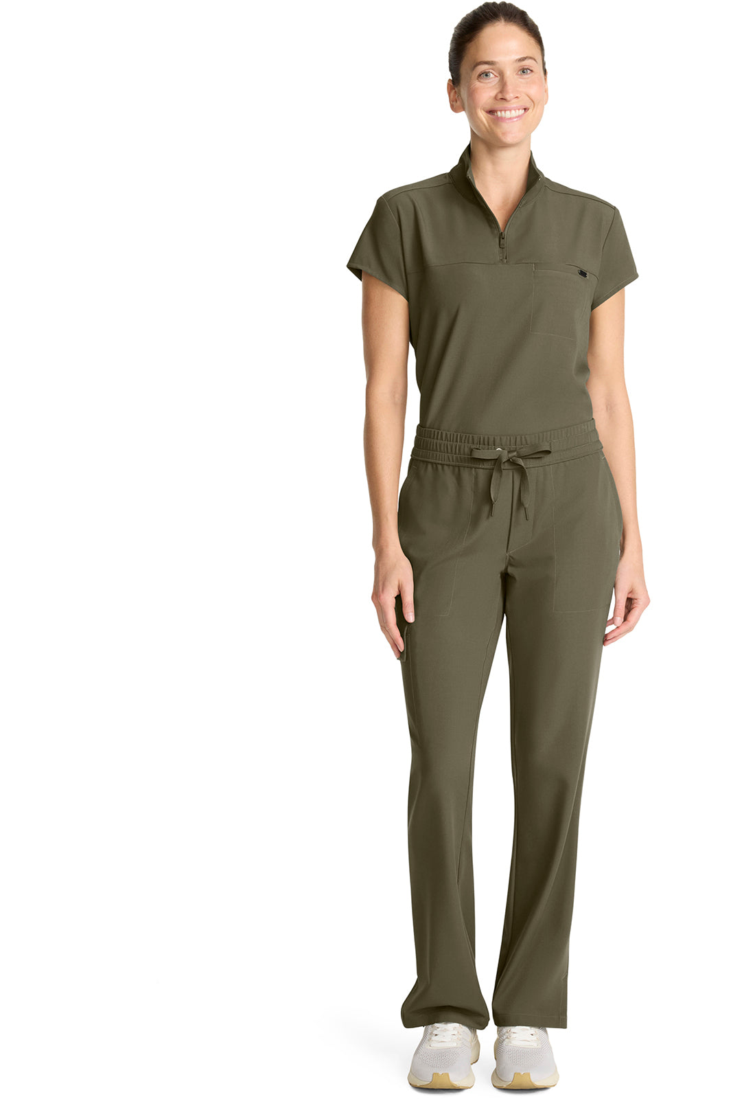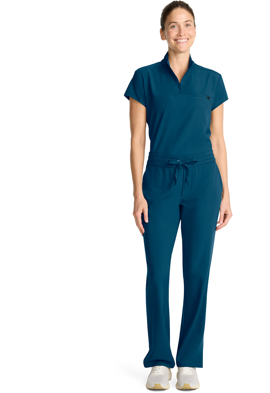 Style and comfort combine for one very wearable pant. The Brandy mid rise pant features an elasticized waistband, webbed drawstring, and mock fly. There are four pockets for organized storage: two front pockets, one flap cargo pocket on the wearer's right side, and one back welt pocket. Flap cargo pocket converts to a welt pocket for easy access. Pockets include pretty printed pocket bag. Curved back yoke for a better fit across the hips. Side vents at hem. The soft four-way stretch fabric includes moisture wicking for added comfort. Modern fit. Straight leg, 17" opening. Inseam: 31"