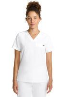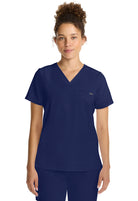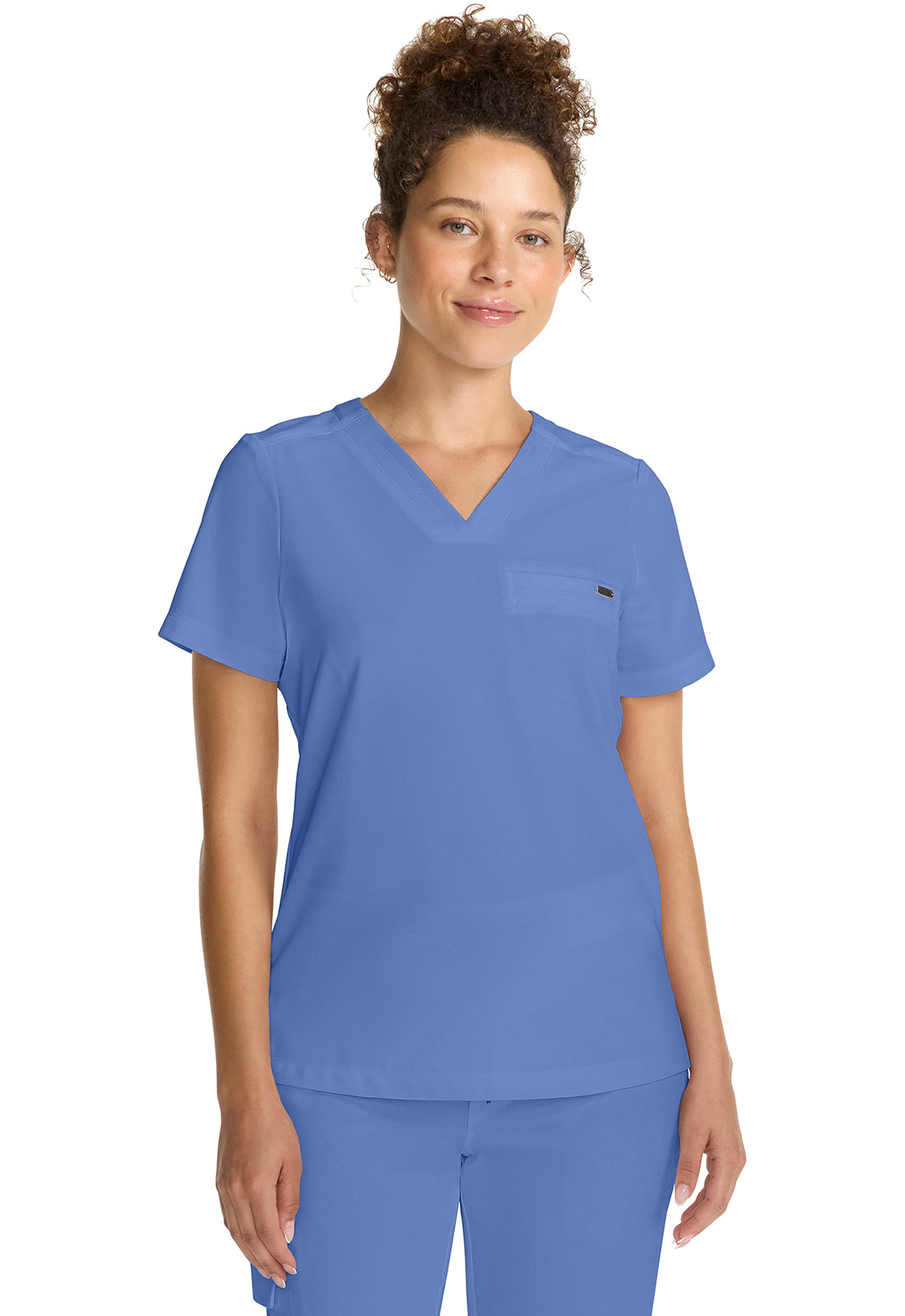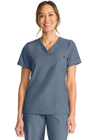 The Billie v-neck scrub top includes one welt chest pocket with a pretty printed pocket bag. Back darts provide fit and shaping. There is a curved hem with side vents for ease of movement. Thanks to the design, this style looks good worn tucked or untucked. The soft four-way stretch fabric includes moisture wicking for added comfort. Modern fit. Center back length (size Small): 25"
