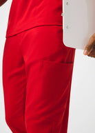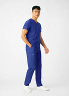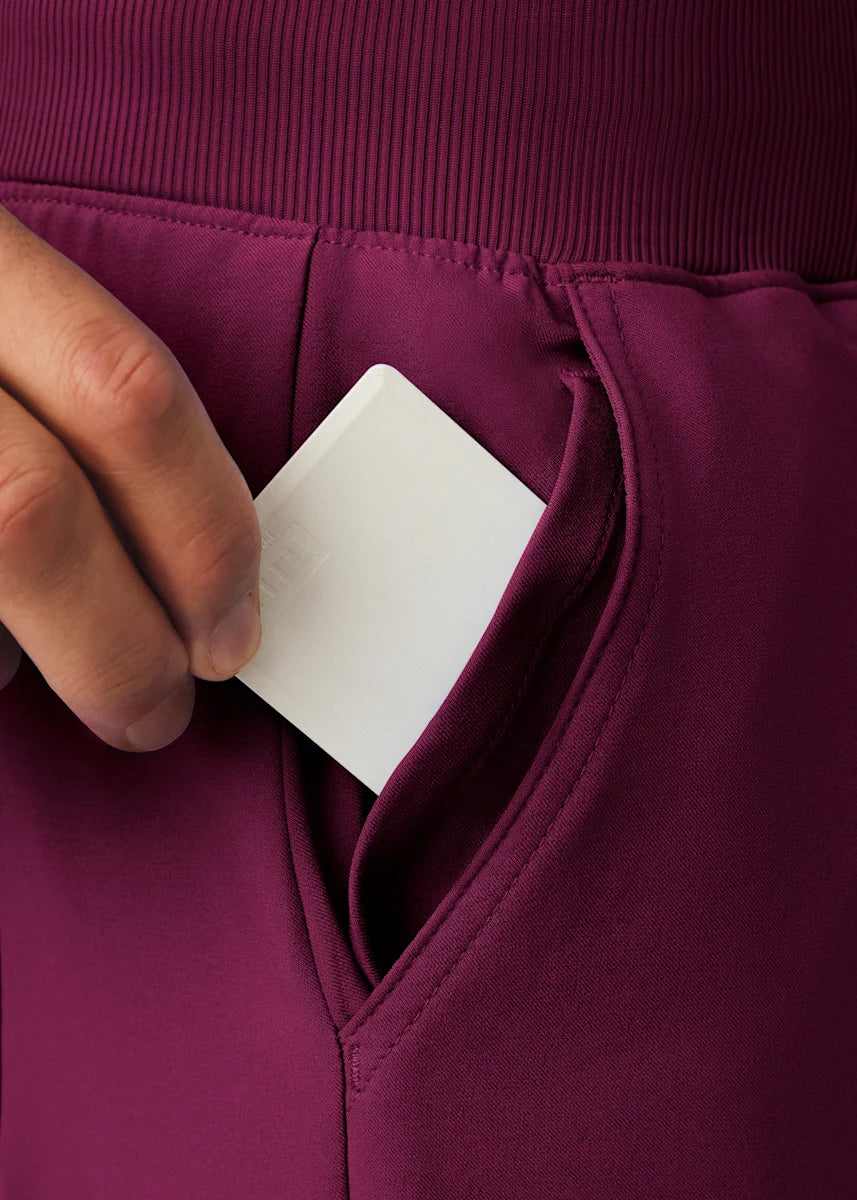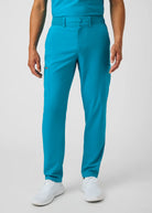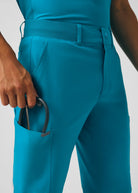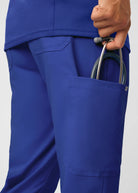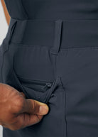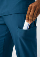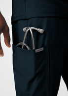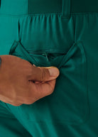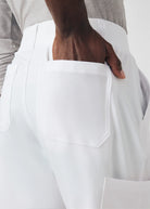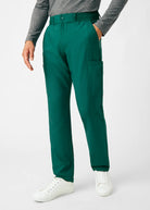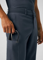 These versatile Men's fit, zip fly, tapered leg pant have a stretchy rib knit waistband with an internal adjustable drawstring, for comfort and  security. This pant also provides a generous amount of storage that meets the demands of your busy workday with 2 front pockets, 2 Cargo pockets, 2 Back pockets and a bonus hidden front money clip pocket and a hidden back zip pocket.
