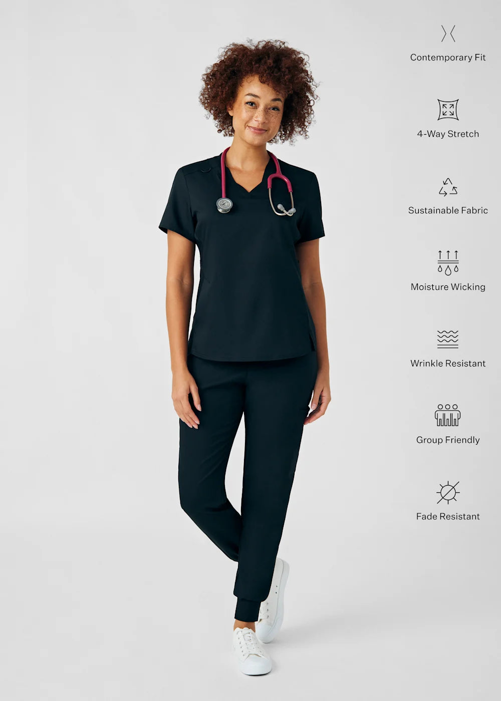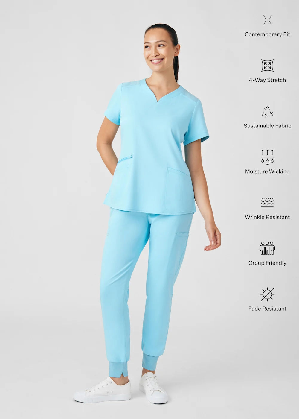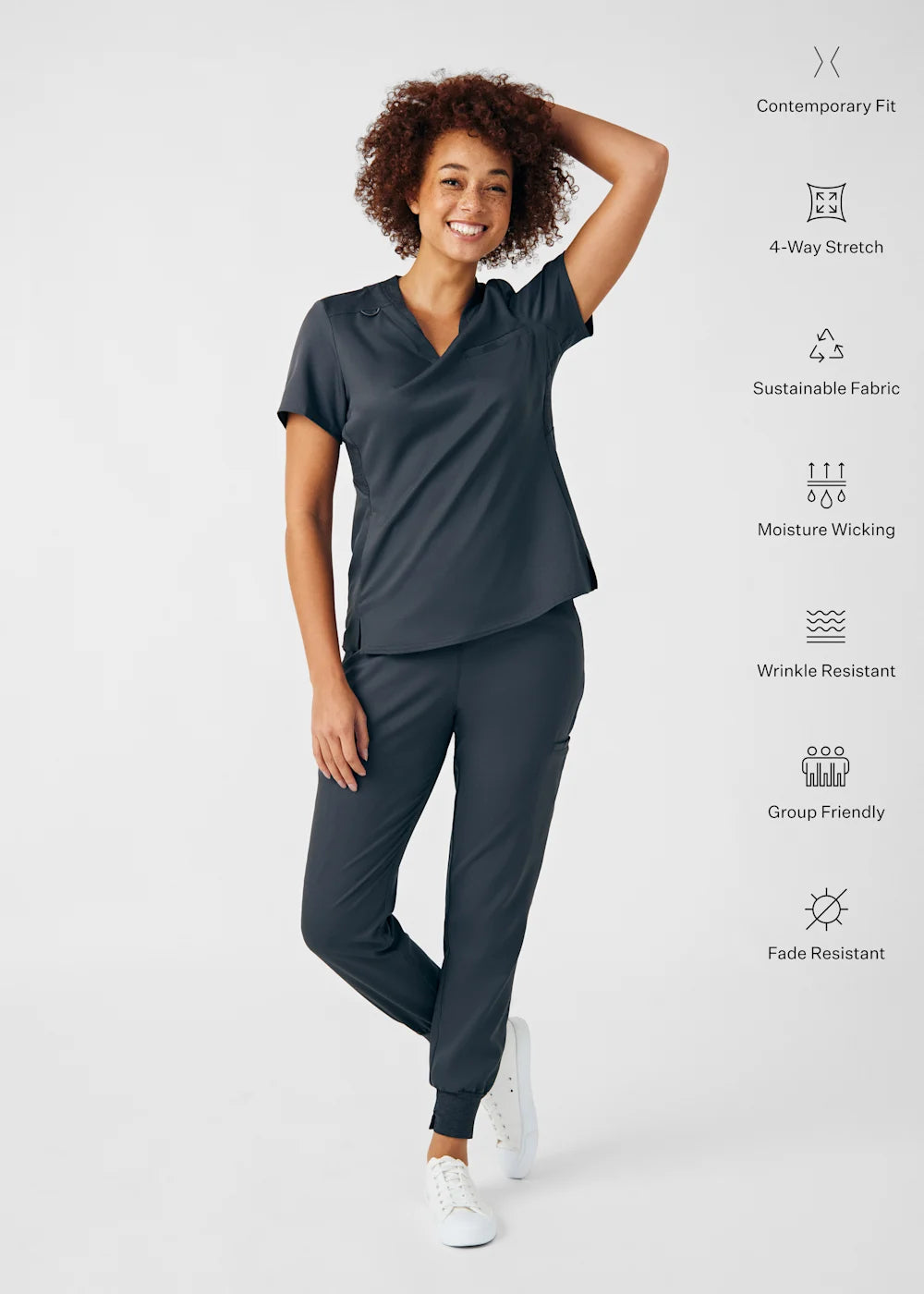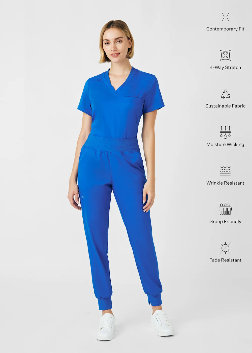 Trendy and functional joggers for women, these pants promote a sporty design and a relaxed fit, providing a modern and comfortable alternative to traditional joggers. The cozy knitted waistband and cuffs not only offer a secure fit but also allow healthcare professionals to move freely while upholding a polished appearance. With a total of six pockets, these joggers combine style, comfort, and practicality.